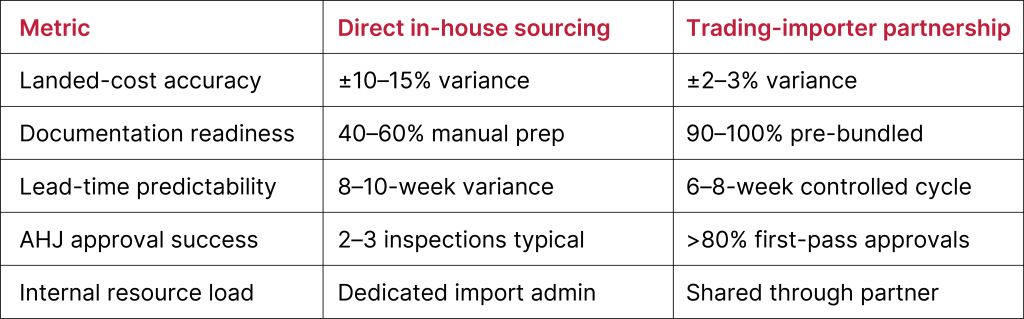 Procurement benchmarks show that companies using structured import partnerships achieve 10–25% lower total landed cost and 30–50% less manual effort in logistics and documentation.